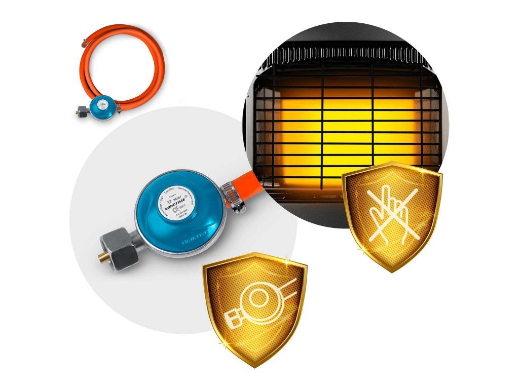- Dőlésérzékelő - a kályha automatikusan kikapcsol a helyzet megváltozása miatt (véletlen felborulás esetén automatikusan kikapcsol).