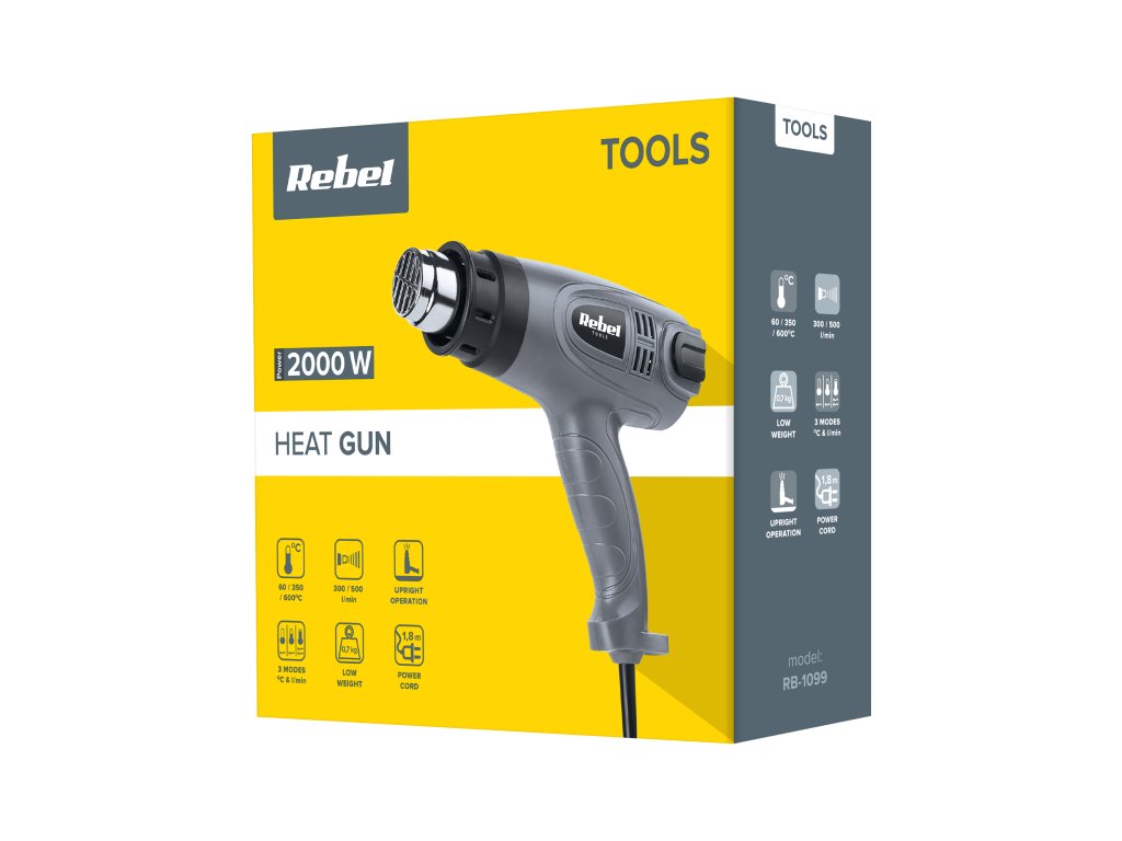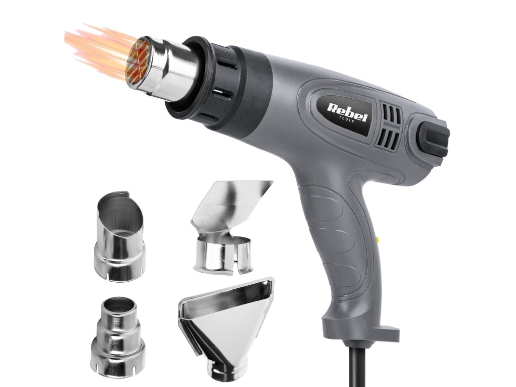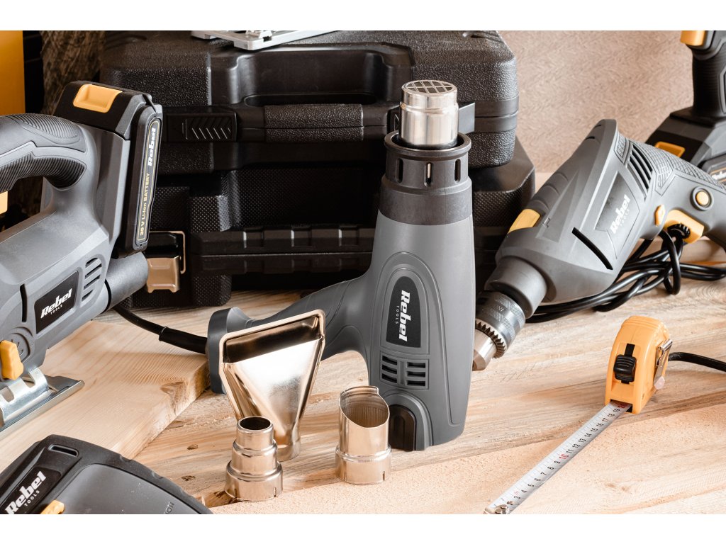 Szereted a barkácsolást? A Rebel Tools hőlégfúvó nem hiányozhat a műhelyében lévő elektromos szerszámok közül. Ez a készülék háromféle hőmérséklet- és légáram-beállítással rendelkezik, amelyek a négy fúvókás tartozékkal kombinálva lehetővé teszik, hogy ne csak a régi festék eltávolítására, hanem számos más célra is használhassa, például műanyag alkatrészek hegesztésére, csövek kiolvasztására, festett felületek szárítására vagy matricák lehúzására. A maximális kényelem és hatékonyság érdekében a munka során a Rebel Tools hőlégfúvóját úgy is tervezték, hogy a fúvóka felfelé nézzen, ami jól jöhet a gép hűtésekor vagy hosszú ideig tartó munka során, amikor a forró levegő áramát függőlegesen felfelé kell irányítani.
