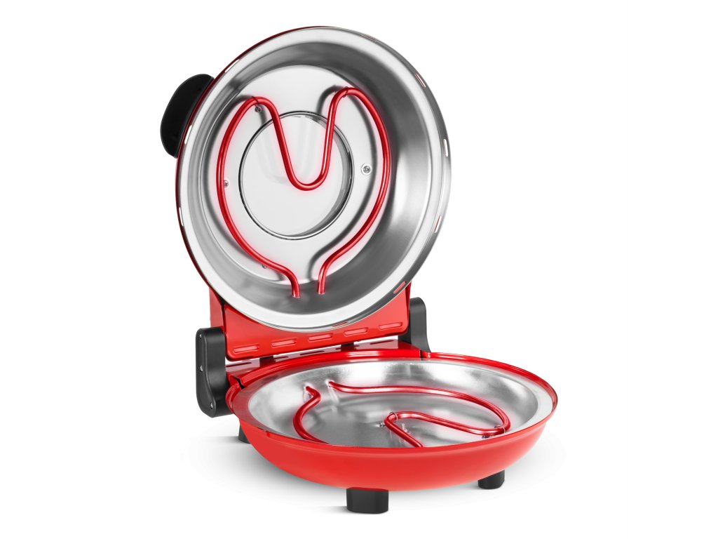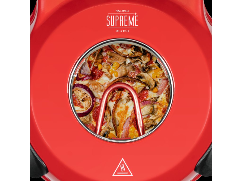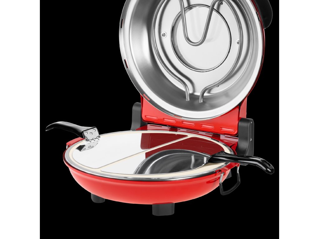 A fedélbe épített ablak lehetővé teszi a sütési folyamat folyamatos ellenőrzését anélkül, hogy a készülék kinyitása szükséges lenne. Láthatja, hogyan kap pizzája aranysárga színt és tökéletes állagot. Ez a megoldás hőt és időt takarít meg, egyidejűleg növeli a kényelem használatát.