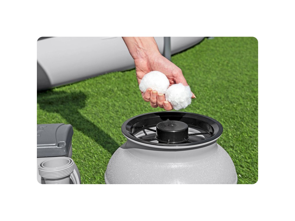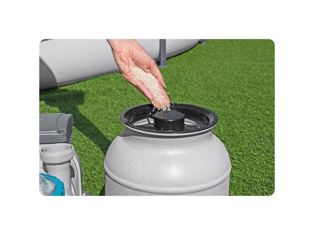 A hagyományos papírfilterekhez képest versenyképesek – a homok hosszabb élettartammal bír, és maga a tisztítási folyamat több lépcsős. Az a modell 1100-42300 l kapacitású medencékhez készült.