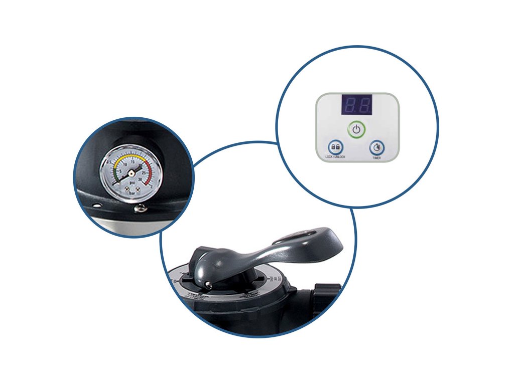 Az Intex homokszűrős szivattyúja képes óránként 5700 liter vizet átszivattyúzni és 12 kg homokot tárolni.