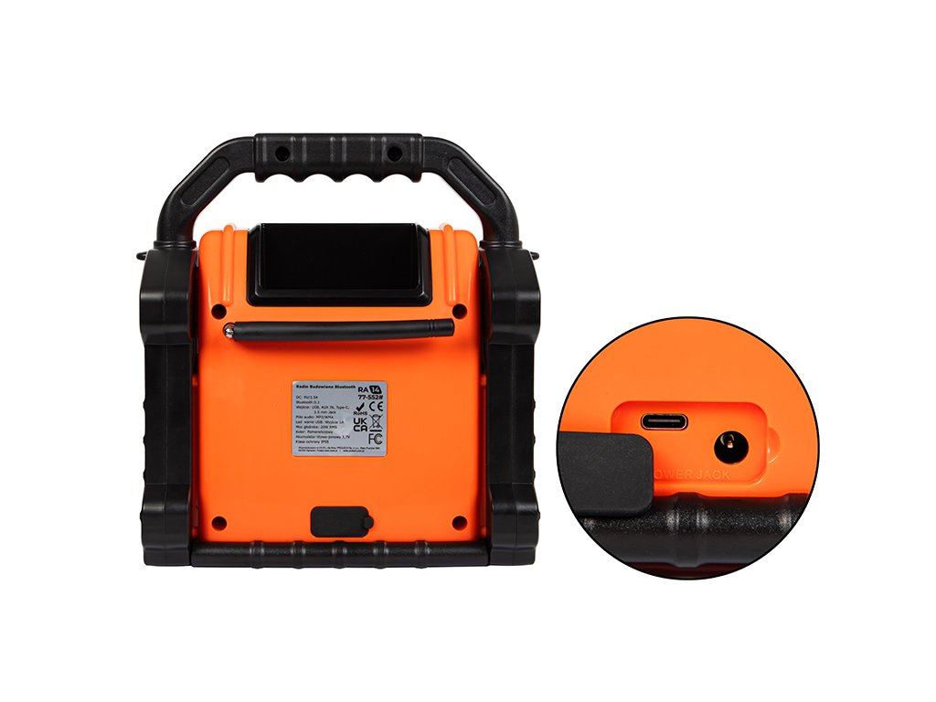 A por- és vízálló konstrukció (IP55) azt jelenti, hogy a hangszóró ideális nehéz körülmények között – építkezésen, műhelyben vagy természetben tett kalandok során. Nem kell aggódnia a por, a permetező víz vagy a véletlenszerű ütődések miatt. A megerősített konstrukció és a gumielemez elemek megvédik a készüléket a mechanikai sérülésektől. Ez egy eszköz, amely a legkeményebb kihívásokat is túléli!