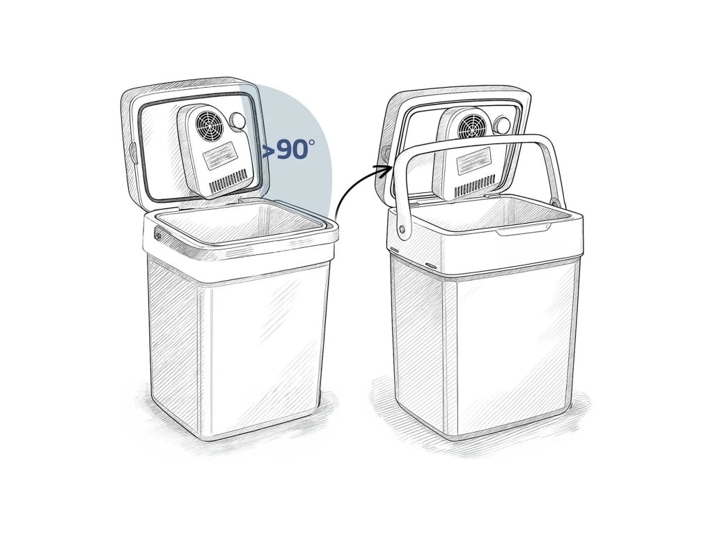 Biztonságos szállítás a fedélzárnak köszönhetően.A hűtő praktikus záró rendszere van – amikor a fogantyú függőleges helyzetben van (szállítási pozícióban), a fedél zárva marad. Ezáltal nem nyílik ki véletlenül szállítás közben.