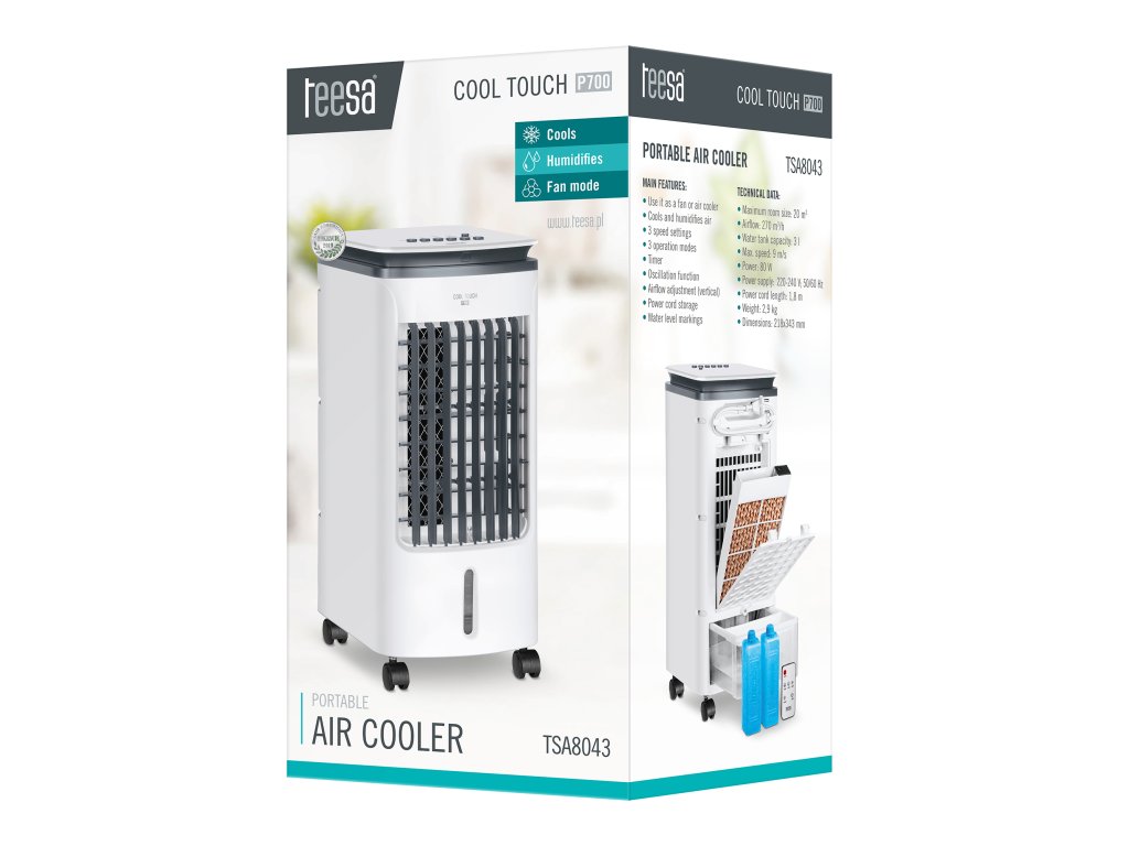 Kíváncsi, hogyan hűtheti le a szobát anélkül, hogy fali otthoni klímaberendezésbe fektetne? A Teesa Cool Touch P700 légkondicionáló berendezés egy maximum 20 m2 alapterületű helyiséget képes lehűteni, így ideális hálószobába vagy dolgozószobába. A Teesa otthoni légkondicionáló oszcillációs funkcióval és függőleges irányú beállítással rendelkezik, így biztosítva az Ön kényelmét.