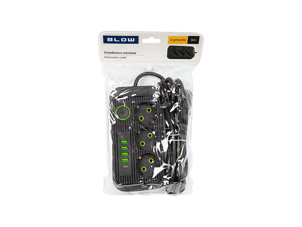 Hosszabbító 3m, 3 aljzat, 4xUSB, 1xUSB-C, fekete