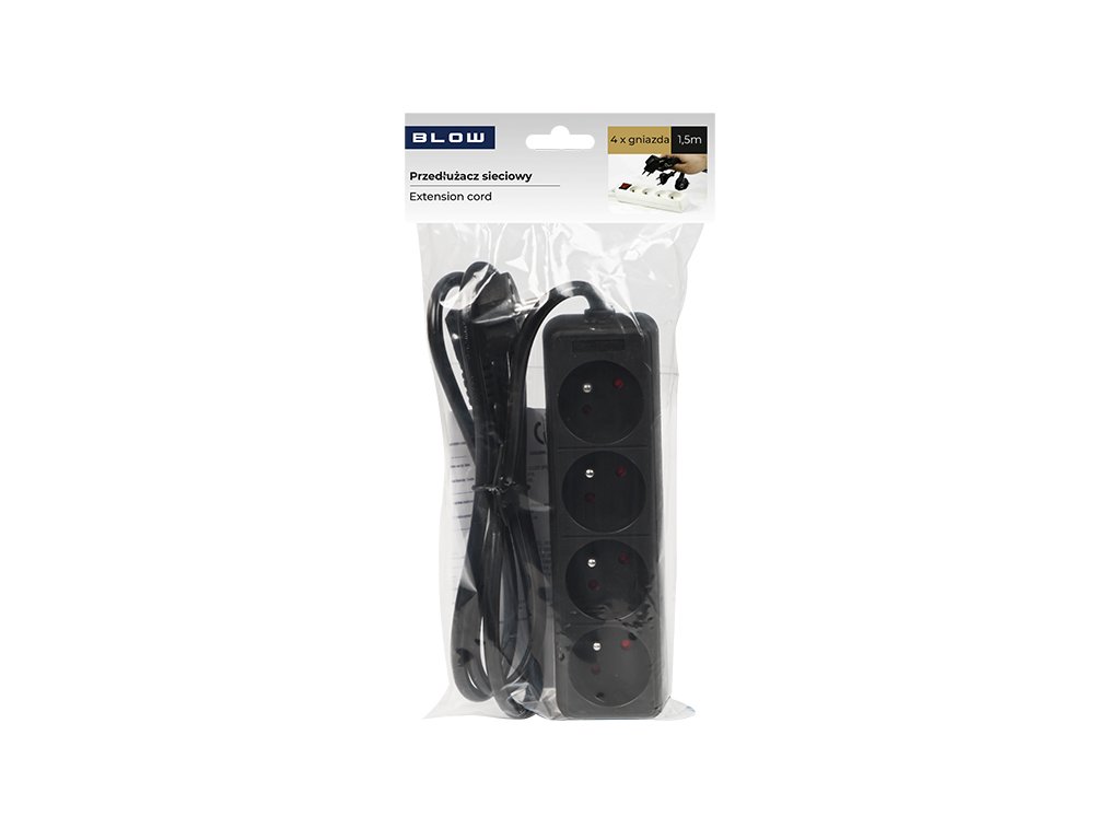 Hosszabbító kábel 4x aljzat 1,5m fekete földeléssel
