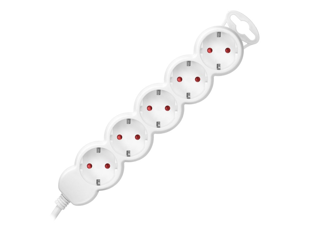 - 5 aljzat: A hosszabbító kábel öt aljzattal van felszerelve, ami lehetővé teszi több készülék egyszeri csatlakoztatását.