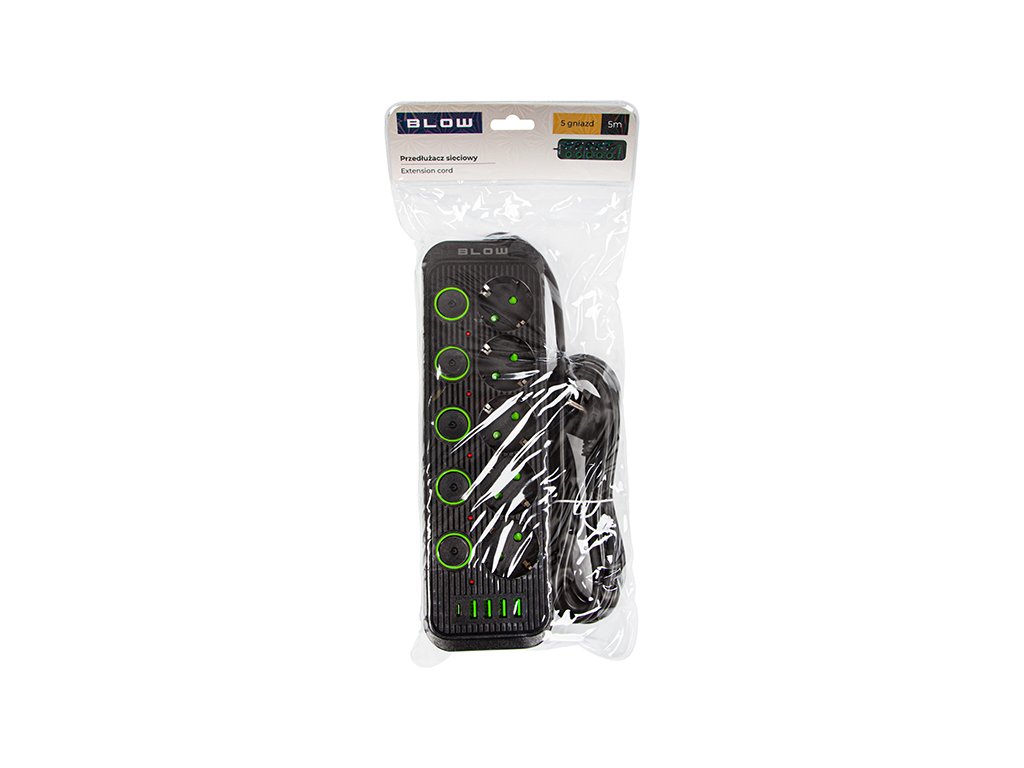 Hosszabbító kábel 5 aljzattal 4xUSB 1xUSB-C 5m fekete