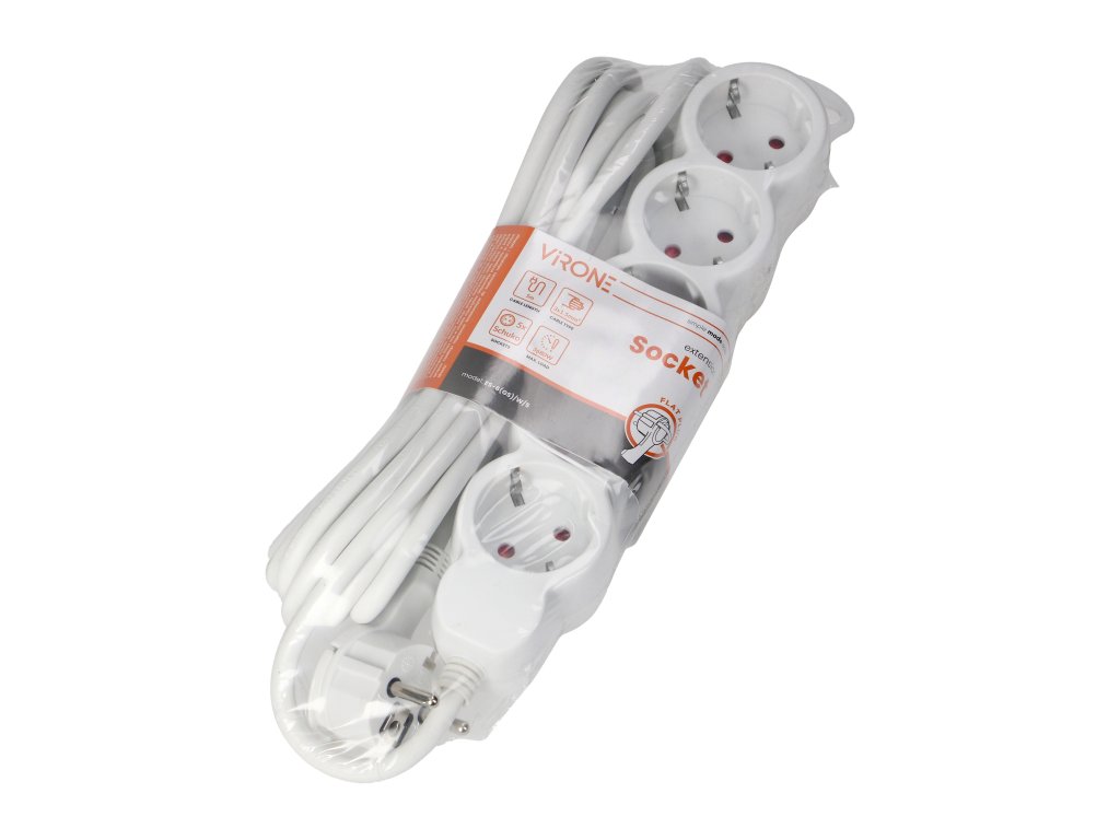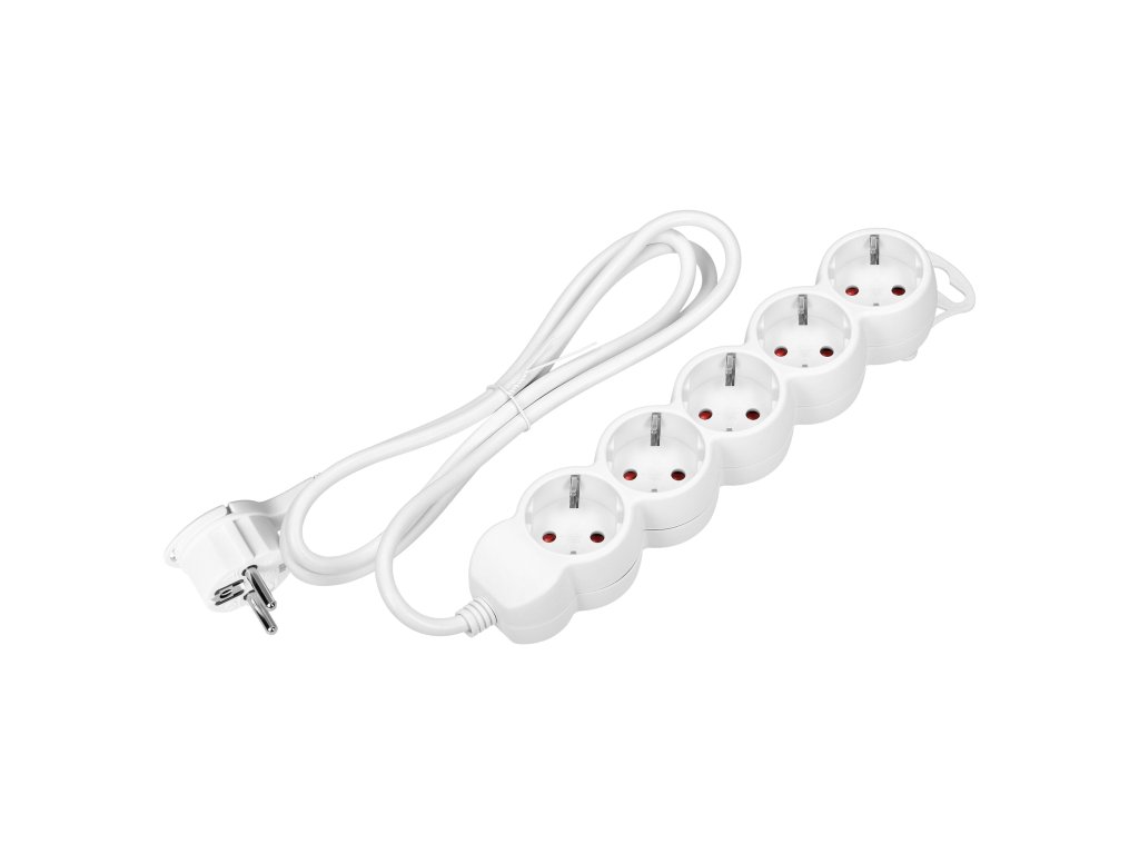 Bemutatjuk az 5 aljzatos, elegáns fehér színű hosszabbító kábelt. Ez a kábel úgy lett tervezve, hogy kielégítse az igényét több eszköz egyidejű csatlakoztatására. Az 5 méteres hosszúsággal ez a kábel elegendő rugalmasságot kínál különböző otthoni vagy irodai felhasználásokhoz.