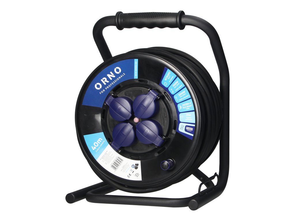 Hosszabbító kábel dobon, 40m, 4 aljzat IP44