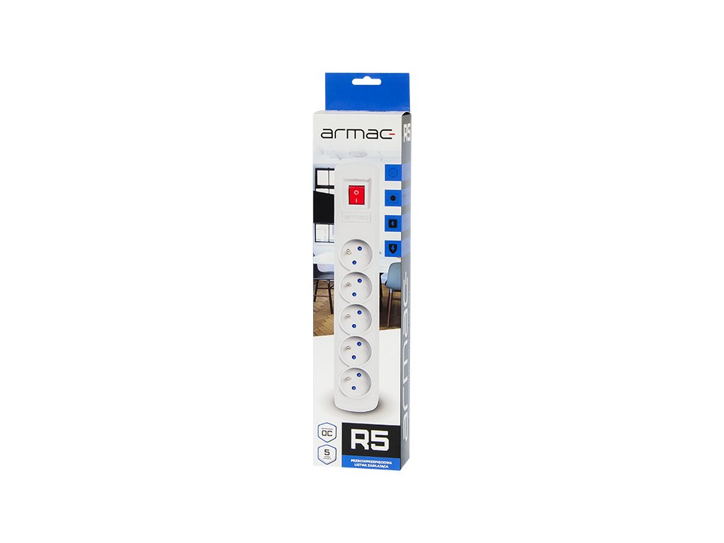 Az R-5 hálózati szűrő speciális rövidzárlat- és túlfeszültségvédelmi rendszerrel és automatikus biztosítékkal rendelkezik a teljes biztonság érdekében. A készülék 5 földelt, védőernyővel ellátott aljzatból áll.