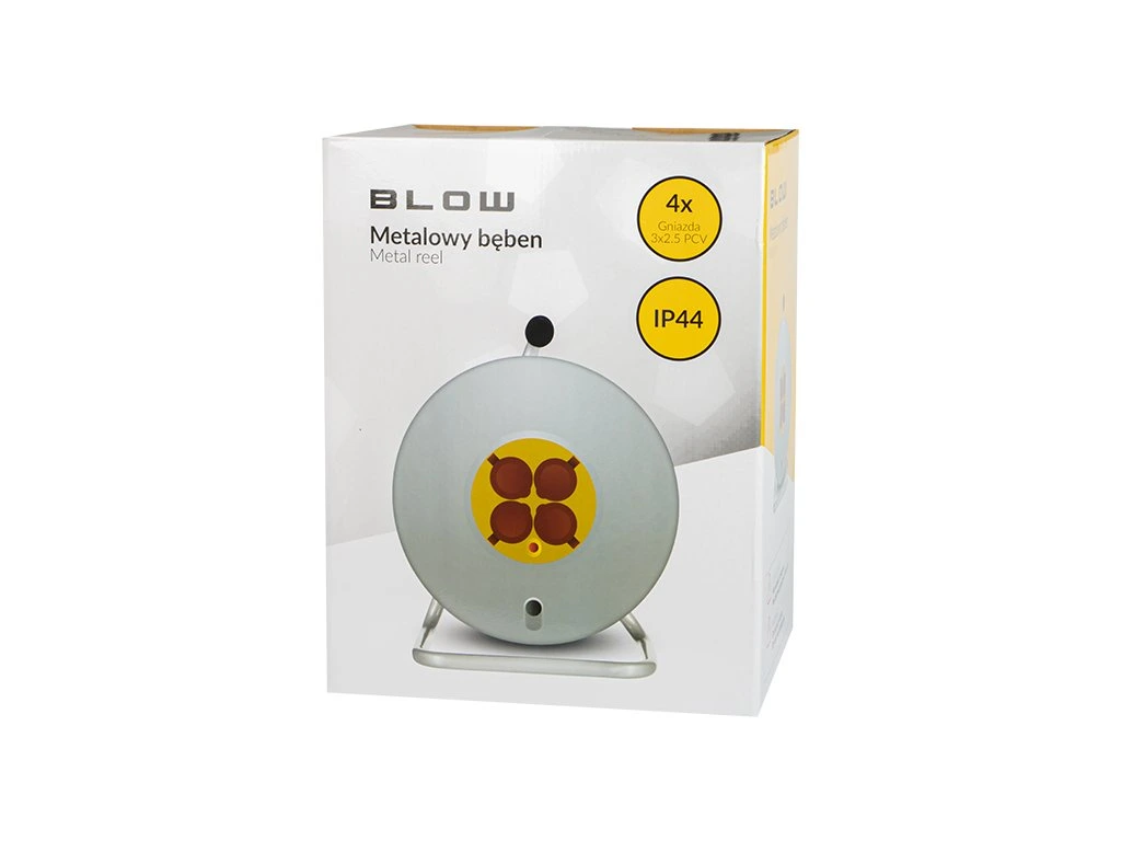 Rögzített hosszabbító vezeték a BLOW fémdobjával. Rendkívül hasznos és nélkülözhetetlen, amikor elektromos berendezéseket, például fűnyírót, fúrót, autóporszívót vagy kerti lámpát szeretnénk csatlakoztatni.
