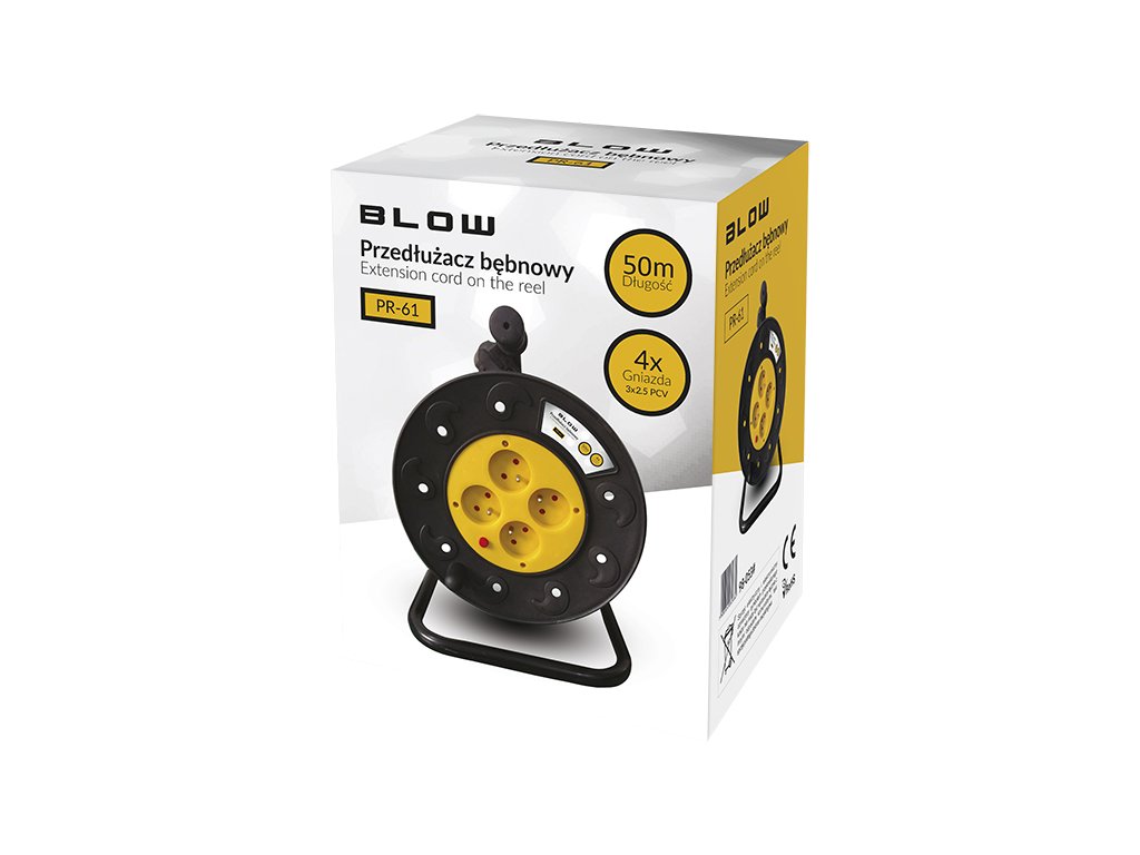 Pr-61 hálózati hosszabbító kábel 50 m hosszú orsón, állvánnyal és fogantyúval, 4 földelt aljzattal.