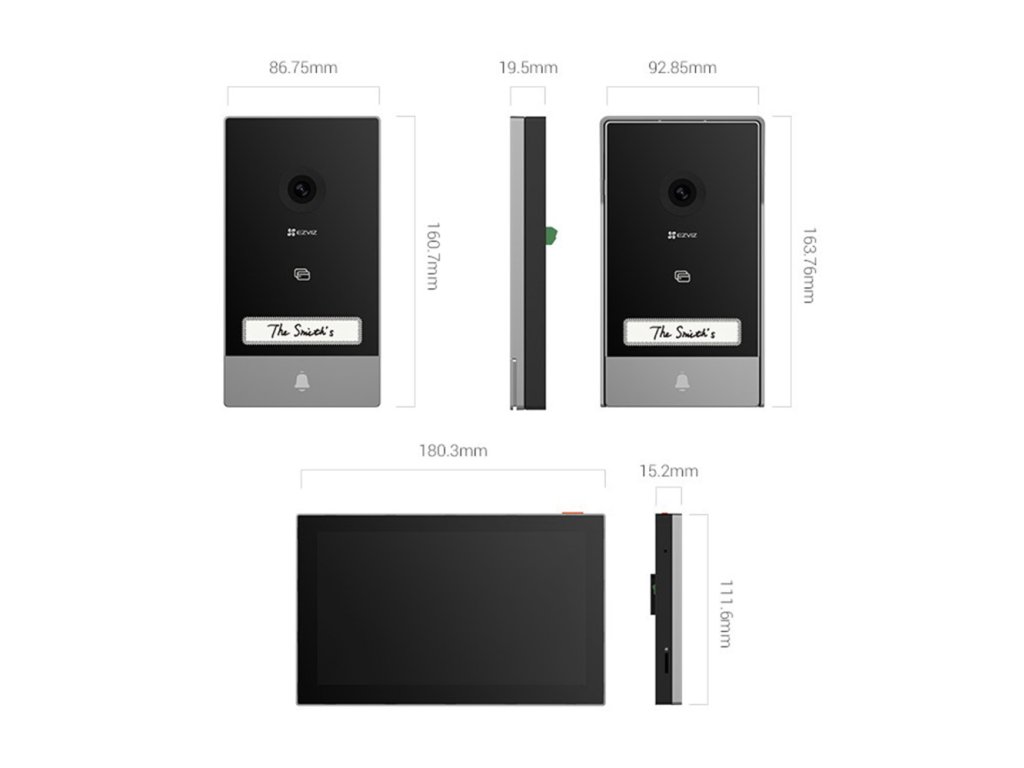 Mindkét kapuszó panel széles látószögű kamerával van felszerelve, amely 2K 2048 x 1296px felbontást biztosít, kiváló képminőséggel és 7" érintőképernyővel. A kapuszó állomások beépített kártya/érintkezős olvasóval rendelkeznek.