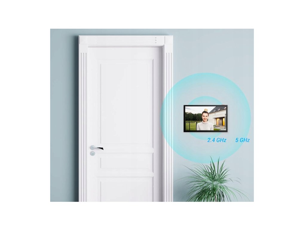A készülékek közötti optimális kapcsolat biztosítása érdekében a belső monitor csatlakoztatható a Wi-Fi 2.4 vagy 5 GHz sávjába. Élvezze az erős Wi-Fi-t kevesebb késleltetéssel, nagyobb átviteli sebességgel és stabil jellel.