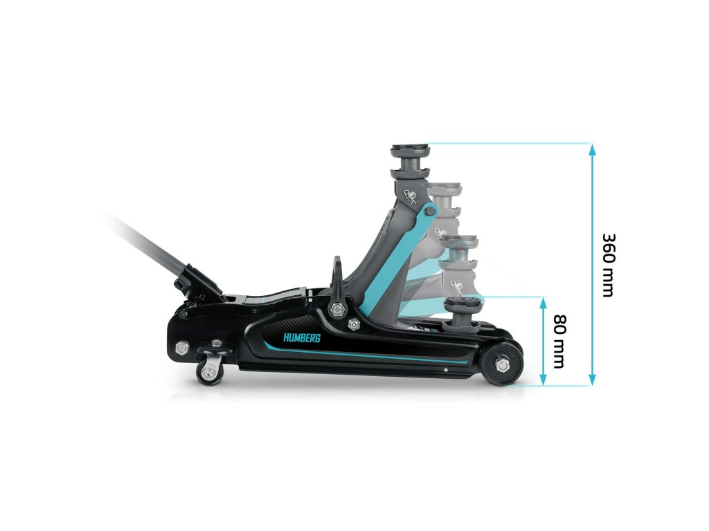 Emelési magasság 80 - 360 mm — alacsony autókat is emel!