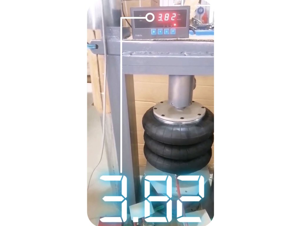 A képen a valós tesztet mutatjuk, amelyben a légemelő 3,82 tonnát emelt, ami meghaladja a névleges teherbírását!