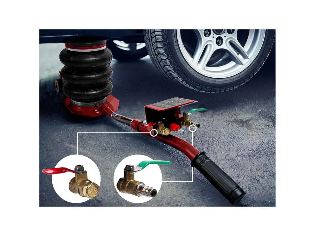 - Piros szelep (leeresztő) – kiengedi a levegőt, csökkentve a légemelőt.