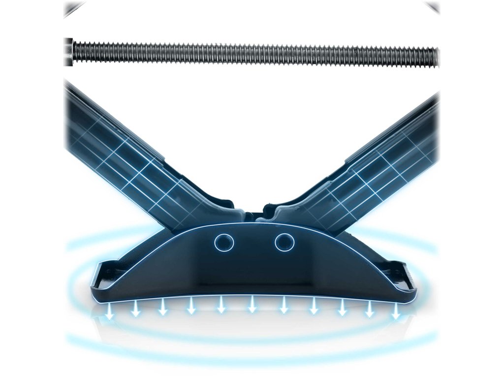 - Megerősített csavarorsó ergonomikus rögzítéssel — garantálja a sima működést és a teljes szerkezet biztos vezetését — nem igényel nagy erőt a forgatás.