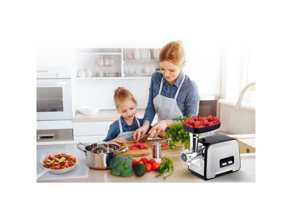 Az eszköz hentesek számára kifejlesztett tartozékkal, keleti kiegészítővel és erős csigával van felszerelve, amely alaposan ledarálja az ételt.