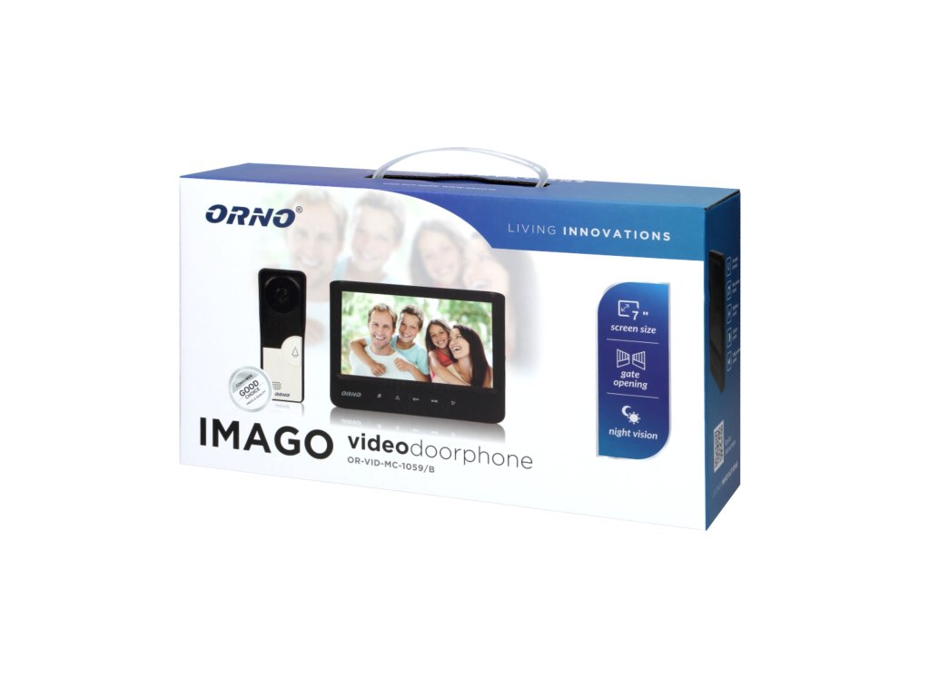 IMAGO Video Doorphone, 7" fekete, két színben (fehér és fekete) kapható, rendkívül vékony 7" LCD monitorral, fokozatmentesen állítható paraméterekkel (fényerő, színkontraszt és hívás hangereje), 16 választható csengőhanggal és egy kiegészítő kapuvezérlő funkcióval. A külső CMOS-kamerapanel felszíni felszerelést igényel (esővédő burkolat tartozék). Infravörös megvilágítással van felszerelve az éjszakai látás érdekében, valamint egy kiegészítő kapuvezérlő funkcióval. Az egyenáramú tápellátás 12 V-os egyenáramú áramforrásból, fali konnektorból történik. A legfeljebb 500 mA áramfelvételű elektromos sorompó nem igényel további tápegységet.Műszaki specifikáció: