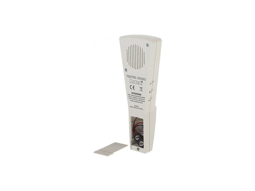 TESTER INDIGO a hangos üvegtörés-detektorok működésének ellenőrzésére szolgál. A teszt során hangos hangot ad ki, amely az üveg törését szimulálja. Háromféle jel közül lehet választani: edzett, sima vagy laminált üveg. Ajánlott a teszter használata a detektor végleges telepítése előtt – ez lehetőséget biztosít az optimális érzékelési távolságot biztosító hely kiválasztására. A tesztelőt használó személy hallásának védelme érdekében védelemmel van ellátva a véletlen indítás ellen. A tesztelő LED dióda tájékoztat a gyenge akkumulátor állapotáról és a csere szükségességéről.