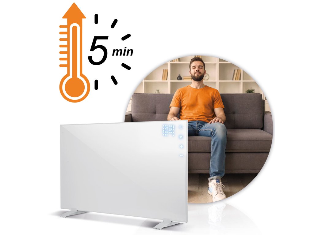 Gyors felmelegedés – a hő már 5 perc után érzékelhető! Ideális a szoba hőmérsékletének gyors változtatására.