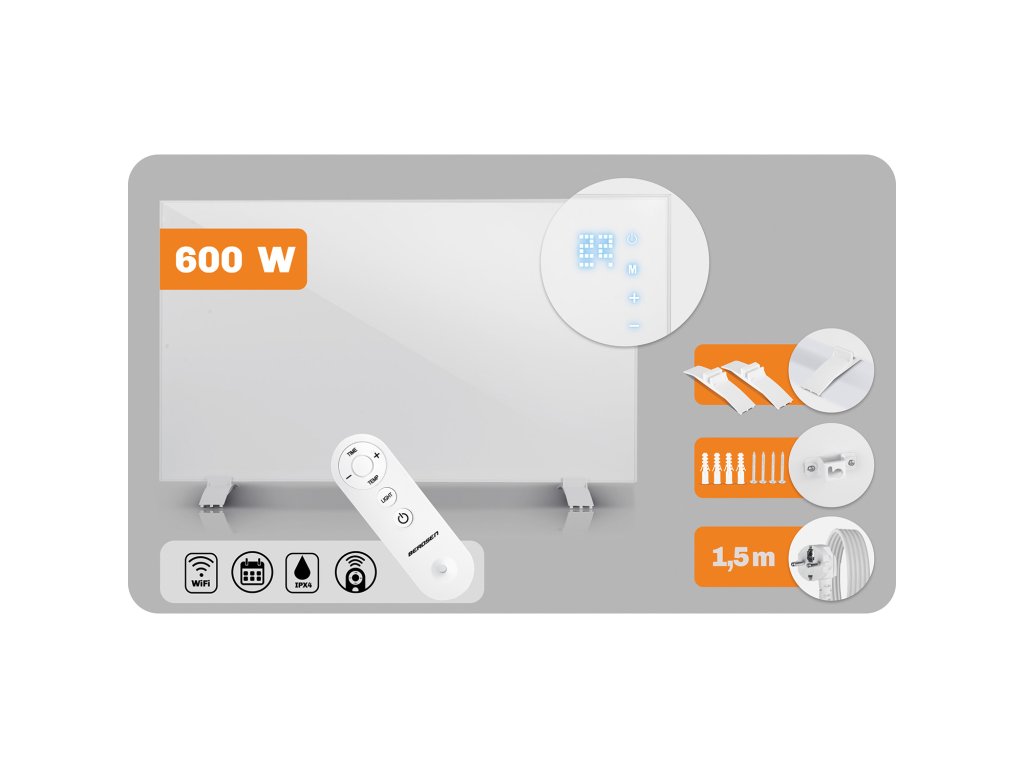600 W | KÖNNYEN KEZELHETŐ | GYORS | BIZTONSÁGOS | TÁVOLI INFRAVÖRÖS TECHNOLÓGIA | WI-FI KAPCSOLAT | TUYA ALKALMAZÁS | TÁVIRÁNYÍTÓ | ÉRINTŐPANEL | IDŐZÍTŐ 1-9 ÓRA | ÁLLÍTHATÓ 16-37