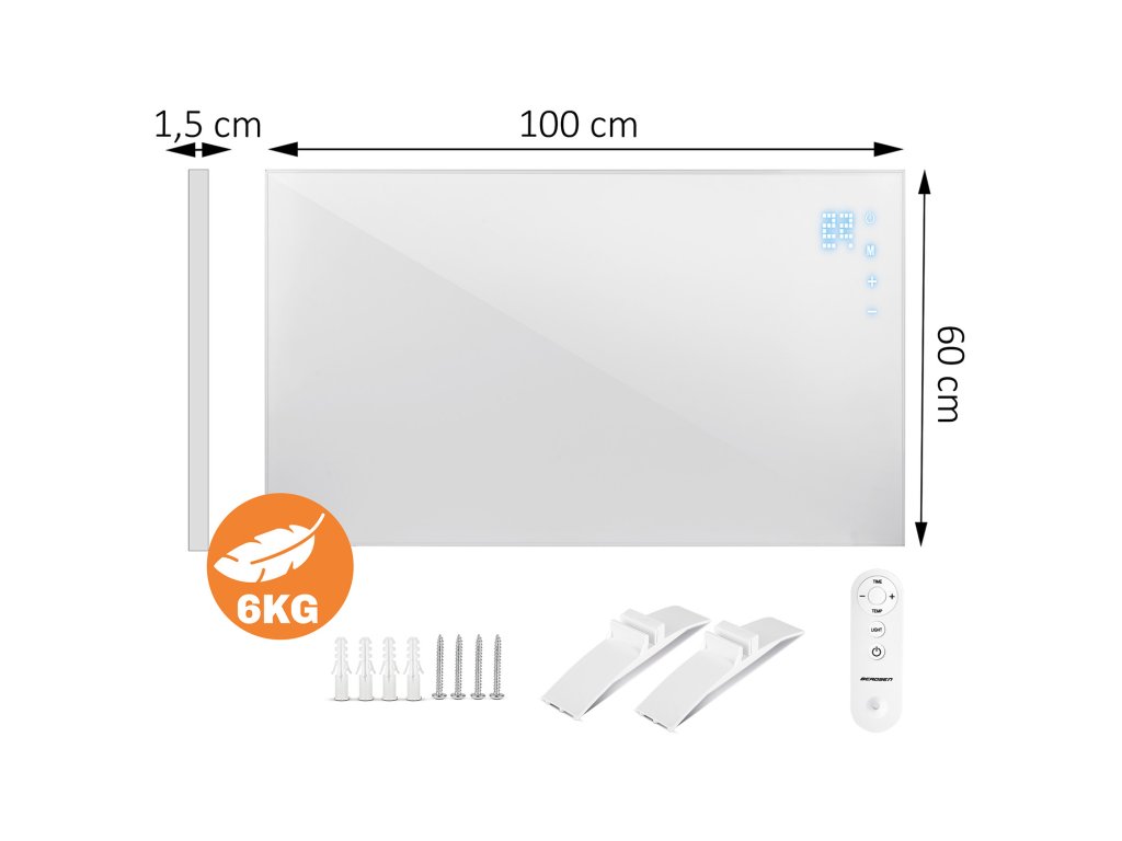 Infravörös fűtőpanel 600 W, Tuya alkalmazással és érintőpanellel