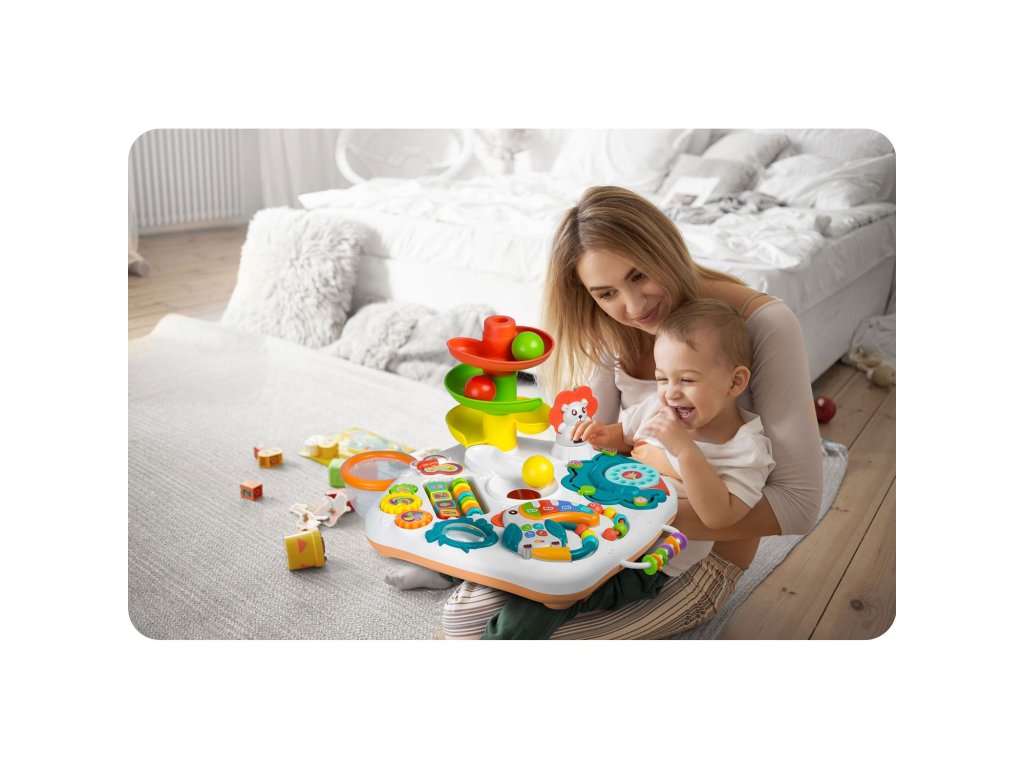 Atermék tökéletes a számok, színek és formák tanulására. Alevehető tábla tanítótáblaként használható, és a lábak hozzáadásával gyorsan oktatási asztalláalakul .