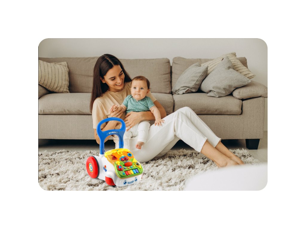 Alassítózárral és csúszásmentes gumivalellátott kerekek biztosítják a gyermek biztonságát, és nem karcolják meg a padlót.