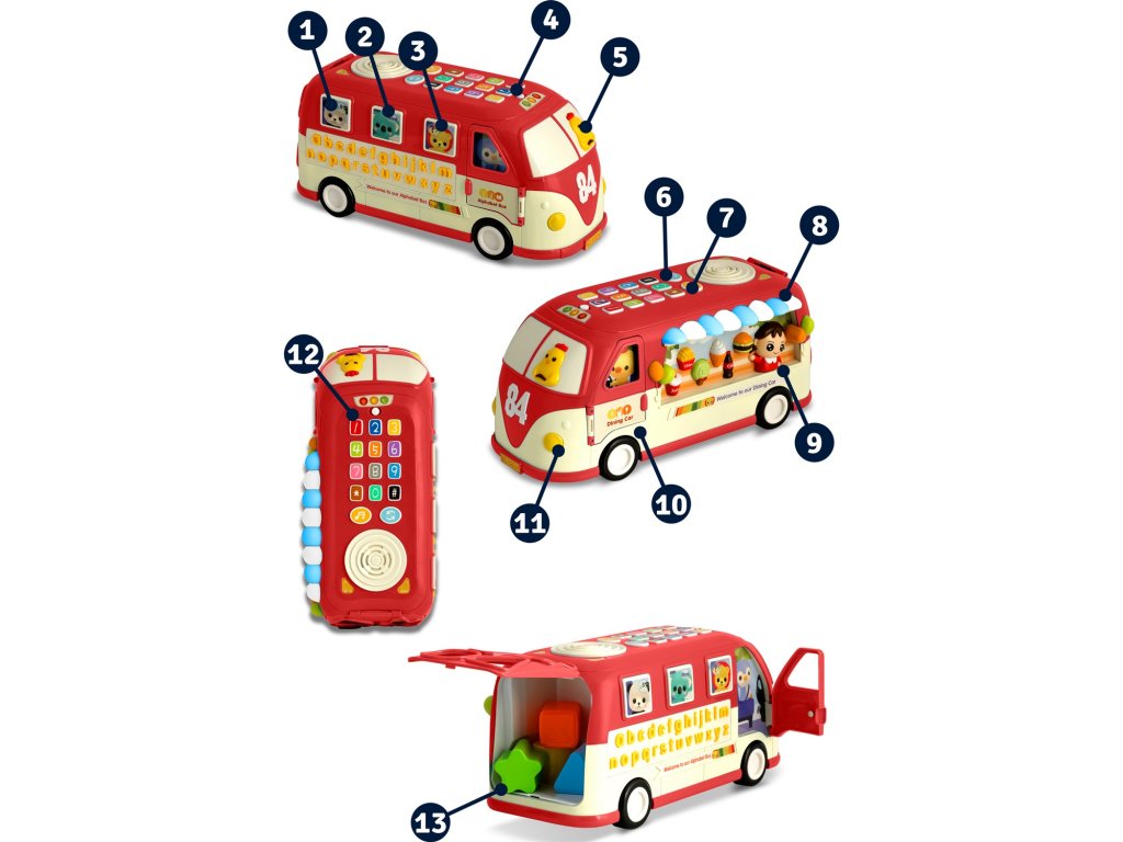 Interaktív játék busz RK-741 piros
