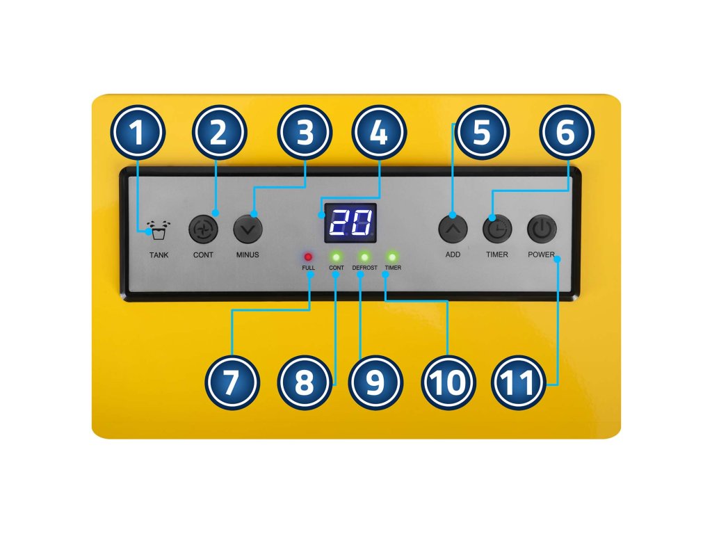 A páramentesítő ellenőrzőlámpával, hangjelzéssel, vízszintjelzővel, kijelzővel és ventilátor üzemmódjelzővel kommunikál – minden szakember kihasználja a megfelelő jelzéseket a készülék működésének optimalizálására.