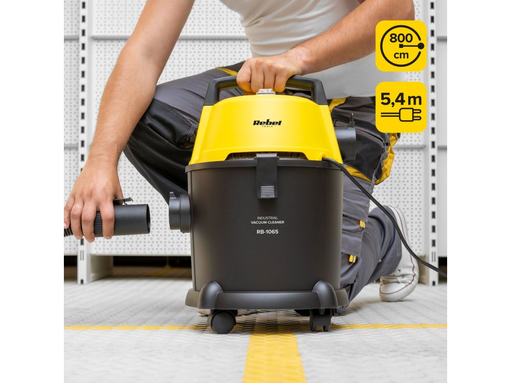 A Rebel ipari porszívó nagy, 15 literes szennyeződéstartállyal rendelkezik, amely lehetővé teszi, hogy hosszú ideig dolgozhasson anélkül, hogy ki kellene ürítenie. Érdemes figyelnie az univerzális HEPA-szűrőre, amely száraz és nedves szennyeződésekhez egyaránt alkalmas. A porszívó 4 cserélhető fúvókát tartalmaz , amelyek lehetővé teszik a szennyeződések eltávolítását különböző felületekről és nehezen hozzáférhető helyekről.