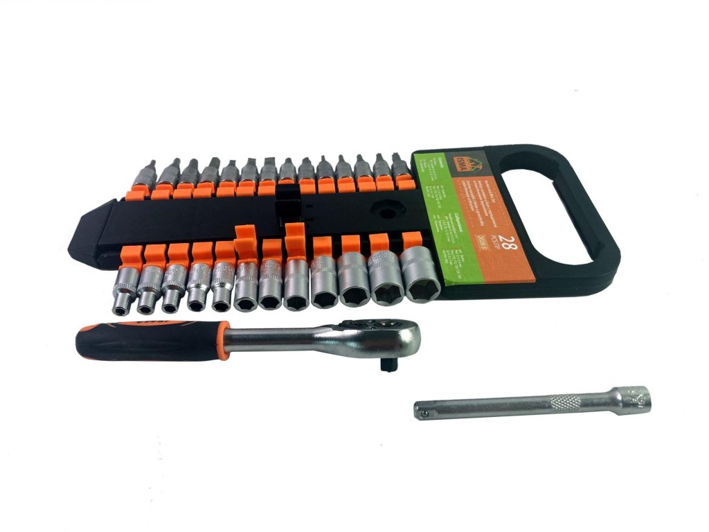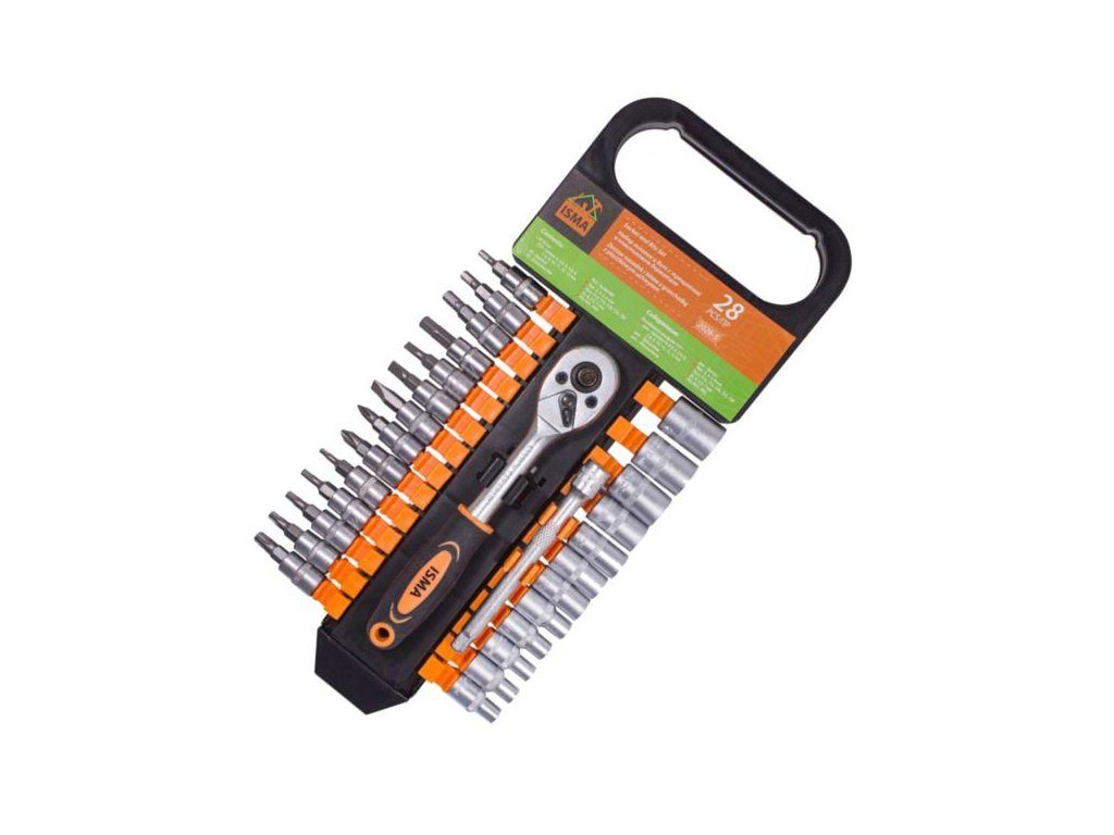 ISMA 28 Darabos Szerszámkészlet, 1/4" CrV Acél Dugókulcsokkal és Bit-Végekkel