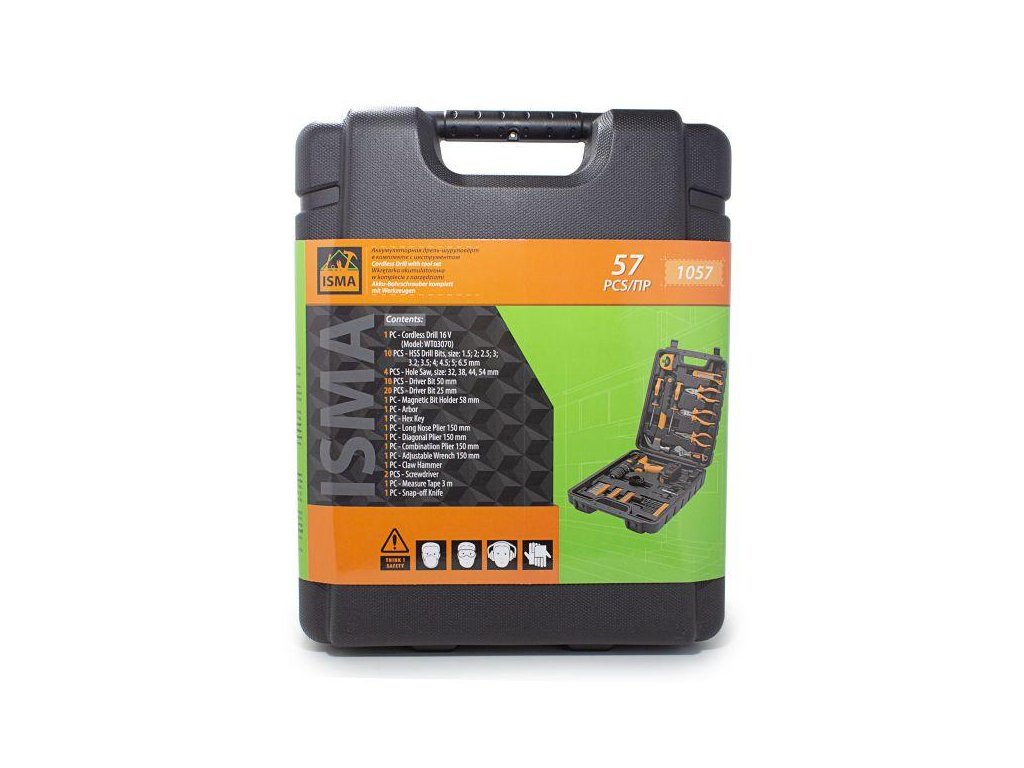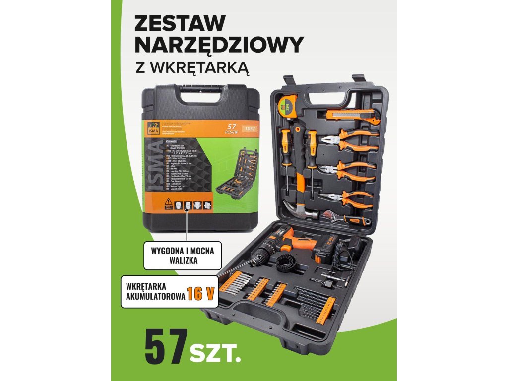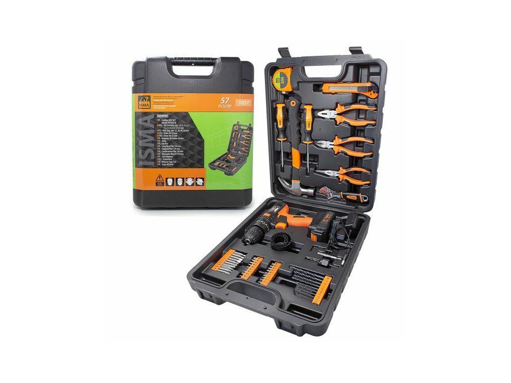 ISMA 57 darabos AKKUMULÁTOROS SZERSZÁMKÉSZLET CSAVAROZÓVAL + KÉSZLET TÁSKÁVAL