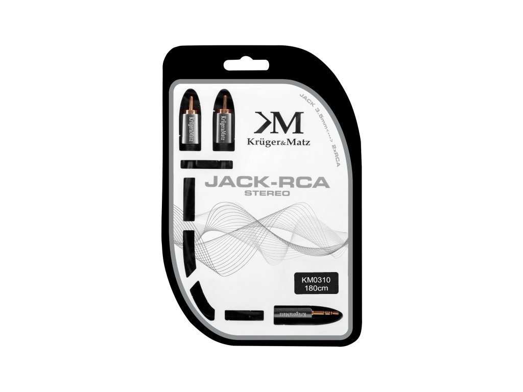 A Kruger&Matz kábel kiváló minőségű anyagokból készült, és jack és 2x RCA csatlakozóval felszerelt eszközök közötti hangjelátvitelre tervezték. Egyik fő előnye a tiszta réz fővezetők használata, amely garantálja a kiváló minőségű, interferencia nélküli kábelezést. A kábel lehetővé teszi a hangátvitelt például egy okostelefon vagy számítógép és egy erősítő között. A Kruger&Matz kábeleket kiváló minőségű kivitelezés jellemzi, és megfelelnek a lengyel és nemzetközi szabványoknak.