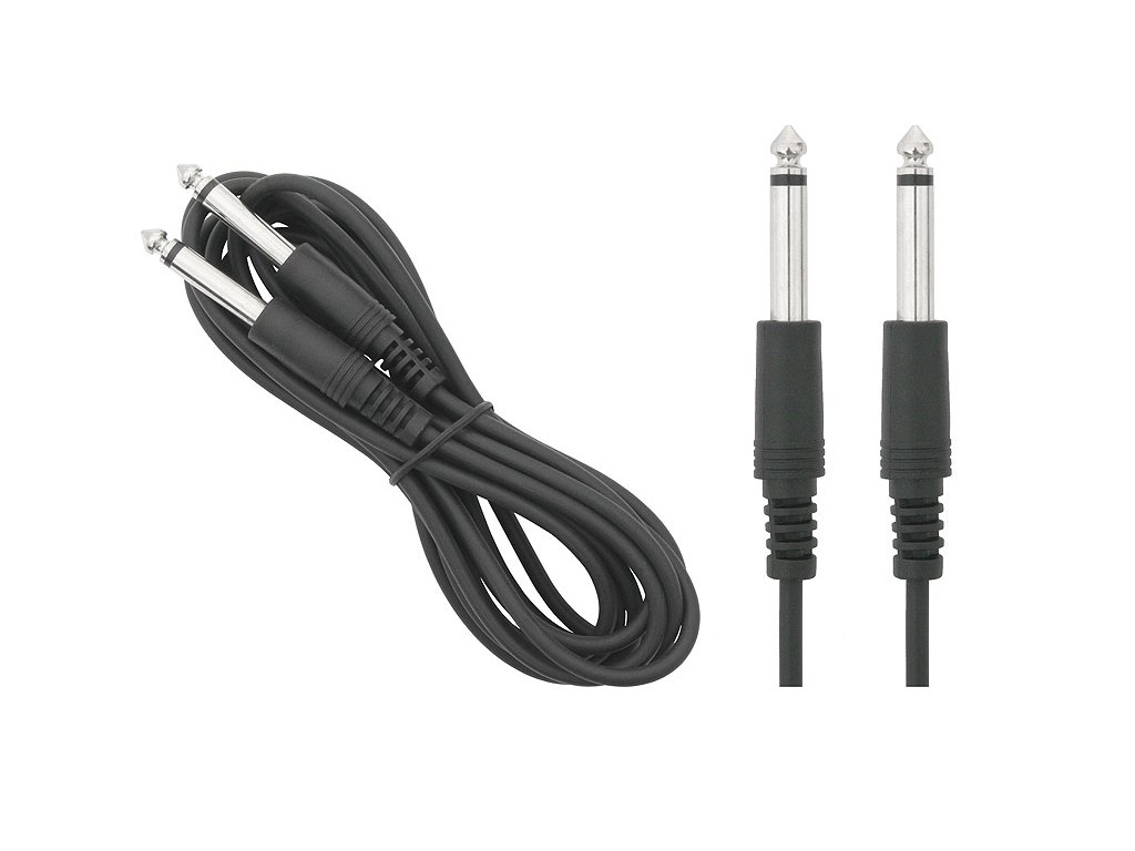 Csatlakozó 2 nagyméretű 6,3 mm-es mono jack csatlakozóval. A nagy jack csatlakozókat elsősorban stúdióberendezésekben és hangszerekben használják.