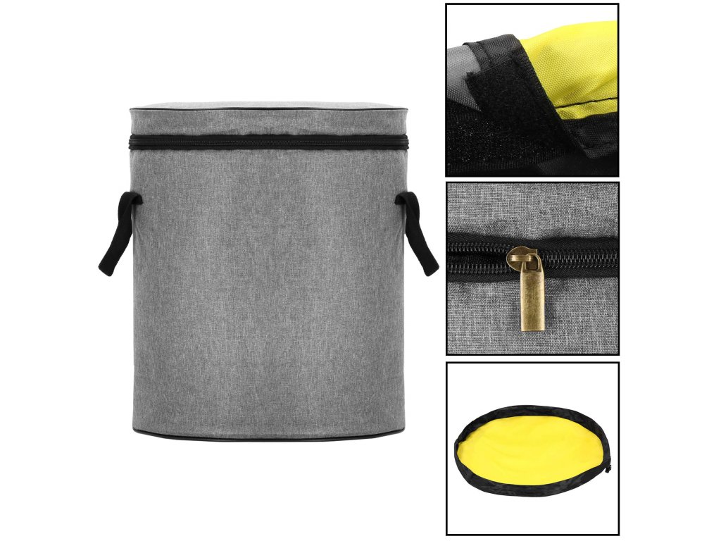 a fedél nem teljesen levehető, hanem a kosárhoz van varrva és egyirányú cipzárral záródik
