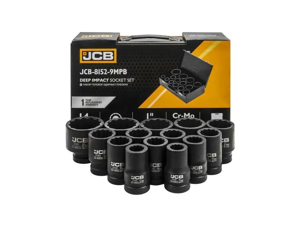 A szett 14 mély ütős dugót tartalmaz, amely a JCB Tools professzionális eszköze, a műhely intenzív munkáira készült, beleértve a csavarok és anya beszerelését és eltávolítását ütős kulcsok használatával.