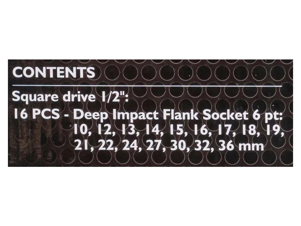 JCB 1/2" Cr-Mo 6-szögletű ütésekhez mélyfej készlet 16 darabos