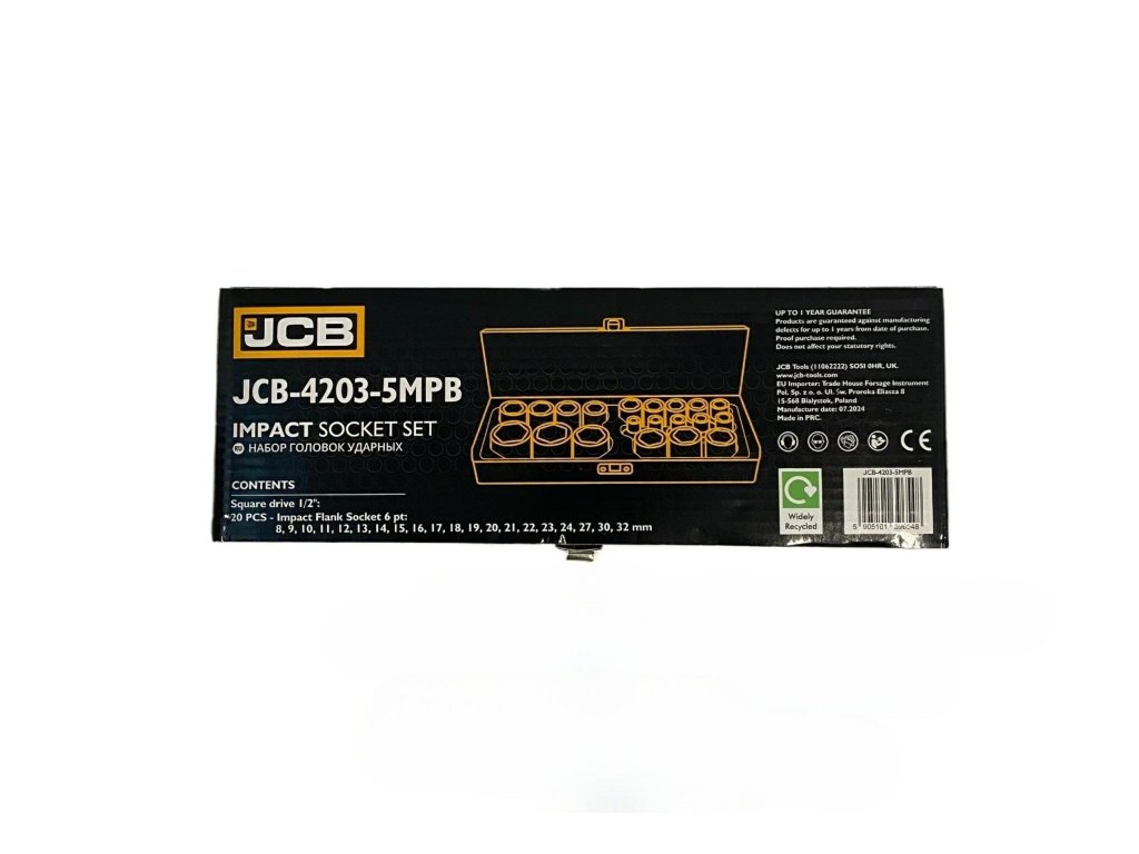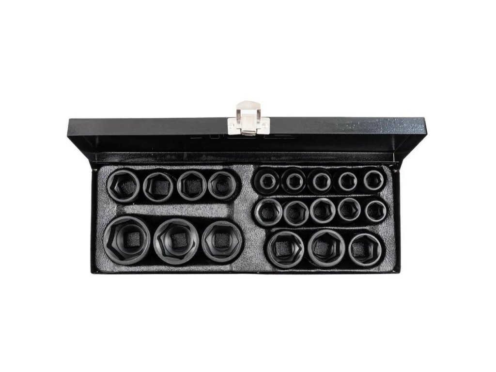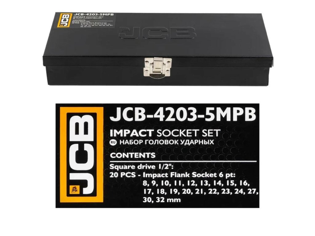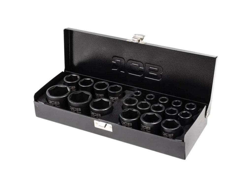 A JCB-4203-5MPB egy teljes készlet 20 ütős dugókulcs a legigényesebb feladatokhoz műhelyekben, autószervizekben és szerelési munkák során. Kiváló minőségű Cr-Mo (króm-molibdén) acélból készültek, a dugók kivételes ellenállást biztosítanak a repedés, ütődés és deformáció ellen, még pneumatikus vagy elektromos kulcsokkal végzett munka során is.