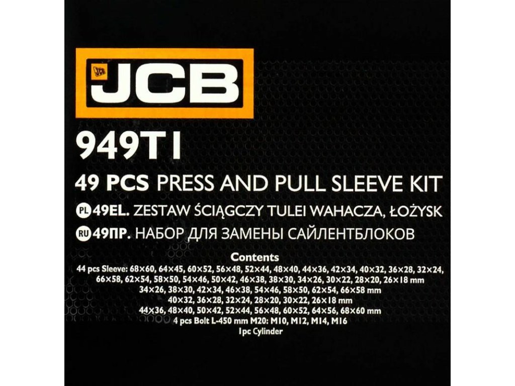 KÜLÖNLEGES TÁMOGATÓ ÉS CSAPÁGYHÚZÓ KÉSZLET - JCB 49 ELEMESES NYOMÓKONVERTER