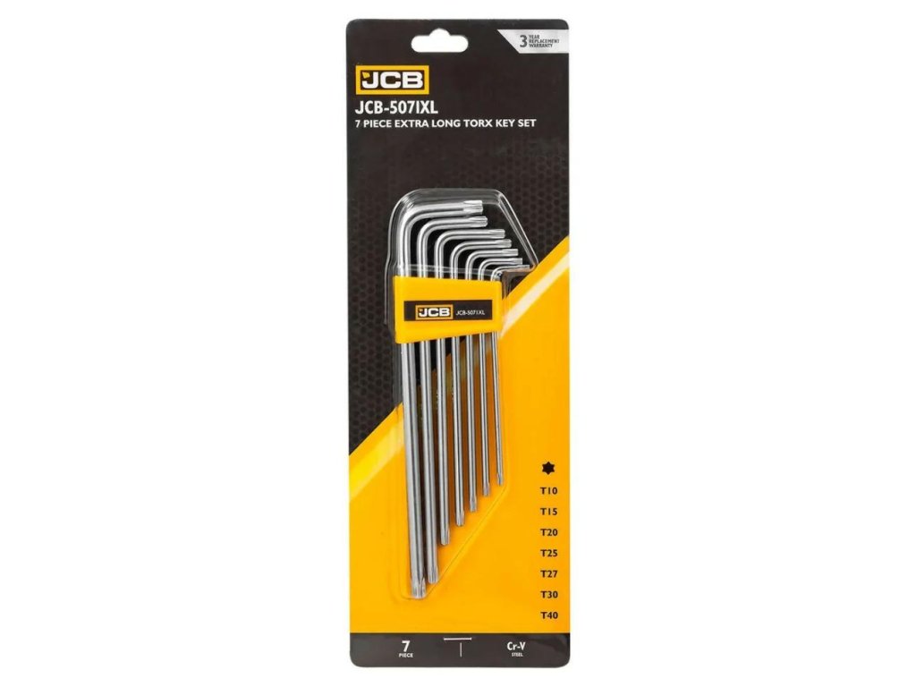 JCB HOSSZÚ TORX KULCS KÉSZLET EXTRA 7 RÉSZES T10-T40 L TÍPUS CR-V JCB Hosszú Torx Kulcs Készlet Extra 7 Részes T10-T40 L Típus CR-V