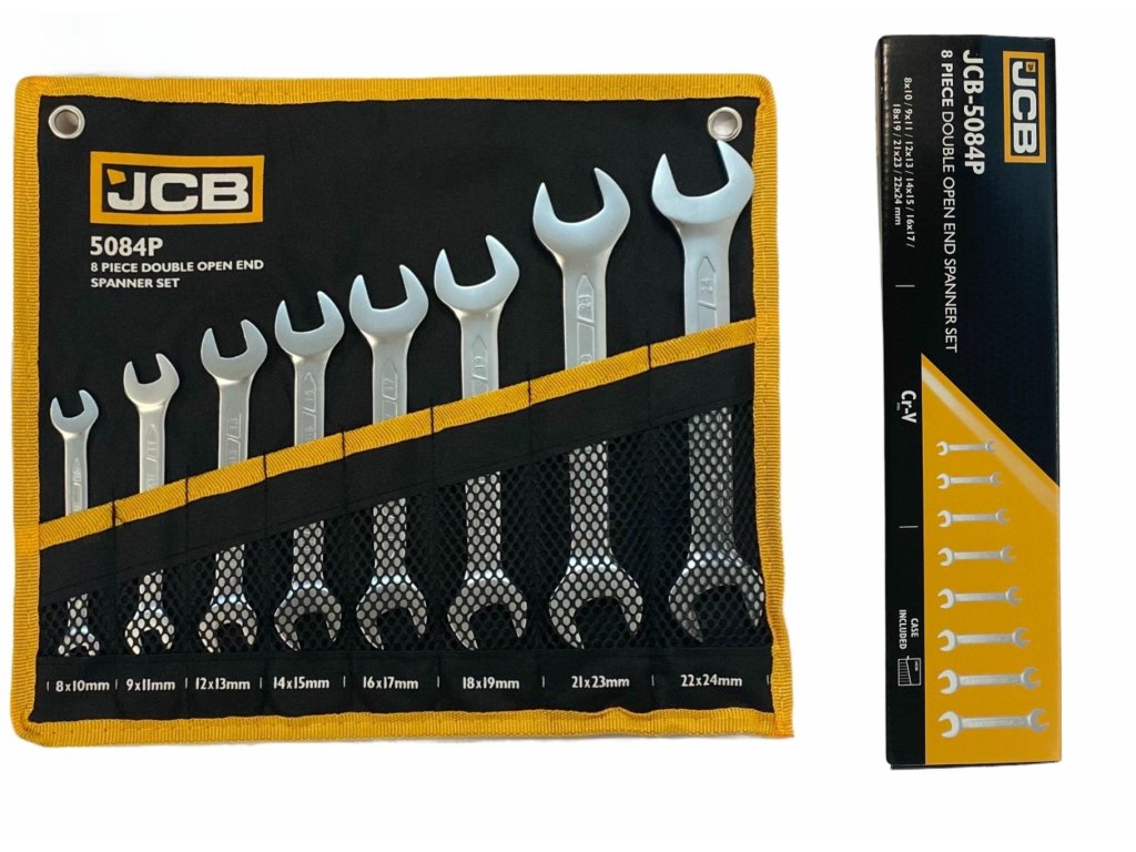 JCB Kétoldalas lapos kulcs készlet 8 részes ponyvával 8-24 mm Cr-V