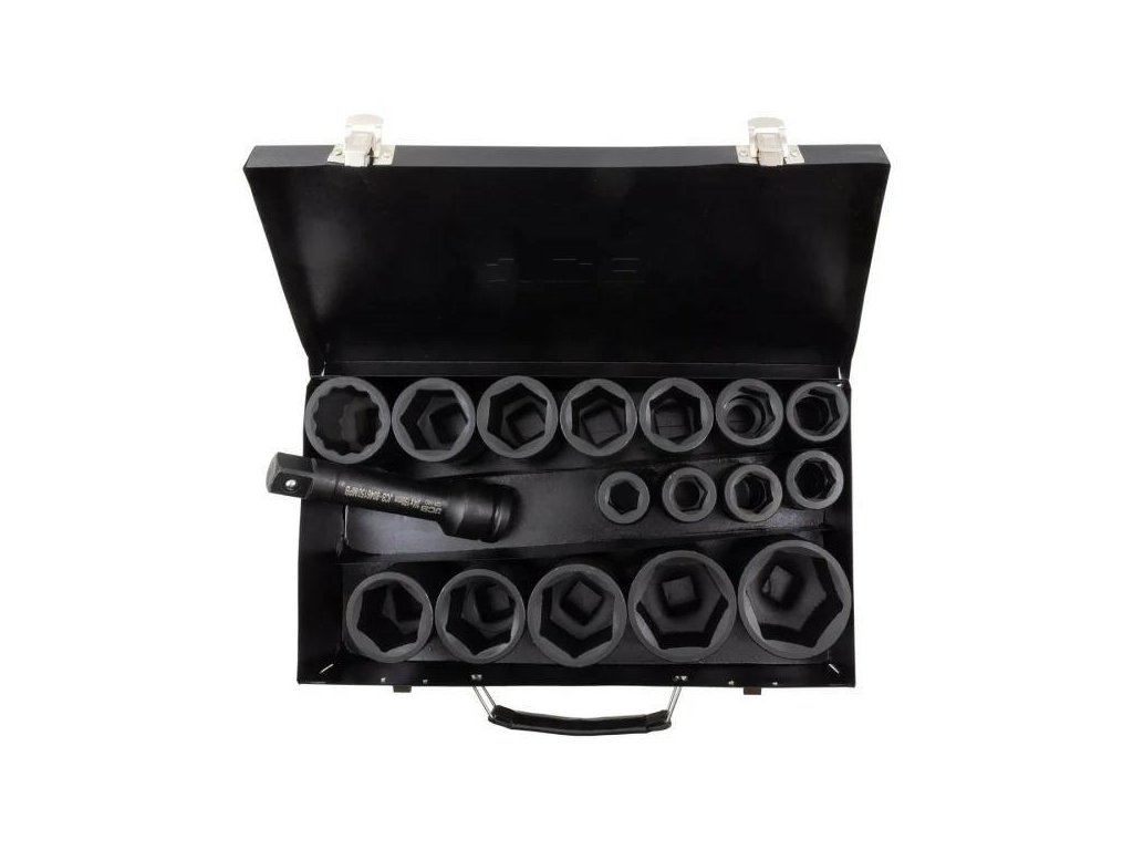 A készlet 17 mély ütős adapter JCB Tools professzionális eszköz, amely intenzív műhelymunkákhoz, például csavarok és anyák beszereléséhez és leszereléséhez használható ütős kulcsok segítségével.