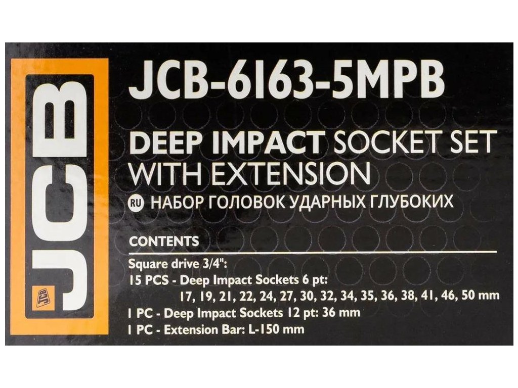 JCB Mély ütőfej készlet 3/4" Cr-Mo 6-szögletű 17 darabos