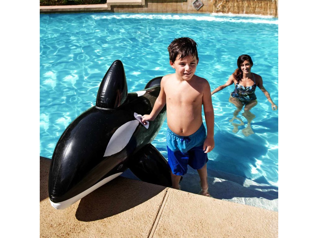 Ez a nagy felfújható bálna mérete 203 x 102, erős fogantyúkkal rendelkezik, amelyek megkönnyítik a játék használatát vízi játékok során.