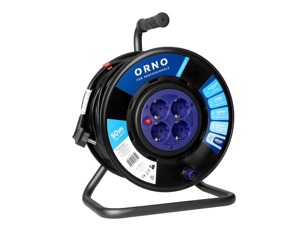 Az 50 m hosszú, H05VV-F 3x1,5mm2 specifikációjú PVC kábel rugalmasságot és használati szabadságot biztosít, még akkor is, ha távol van az aljzattól. A maximális terhelés 1100W/4,8A feltekert kábelnél, és 3200W/13,9A letekert kábelnél. Még a legigényesebb eszközöket is gond nélkül csatlakoztathatja.