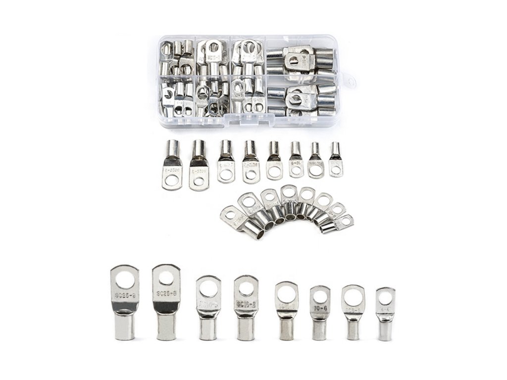 60 darabos kábelkarika készlet Legmagasabb minőségű ónbevonatú réztermék, környezetbarát, biztonságos használatra Különböző sajtolt végek praktikus, rekeszes tokban Specifikáció: anyag: ónbevonatú réz szín: ezüst mennyiség: 60 darab / 1 készlet Csomag tartalma: 5 darab x SC25-8 bilincs (vezetékszélesség 7mm, csavar furat 8,5mm) 5 darab x SC25-6 bilincs (vezetékszélesség 7mm, csavar furat 6,5mm) 5 darab x SC16-8 bilincs (vezetékszélesség 6mm, csavar furat 8,5mm) 5 darab x SC16-6 bilincs (vezetékszélesség 6mm, csavar furat 6,5mm) 10 darab x SC10-8 bilincs (vezetékszélesség 5,4mm, csavar furat 8,5mm) 10 darab x SC10-6 bilincs (vezetékszélesség 5,4mm, csavar furat 6,5mm) 10 darab x SC6-8 bilincs (vezetékszélesség 4,1mm, csavar furat 8,5mm) 10 darab x SC6-6 bilincs (vezetékszélesség 4,1mm, csavar furat 6,5mm)60 darabos kábelkarika készlet